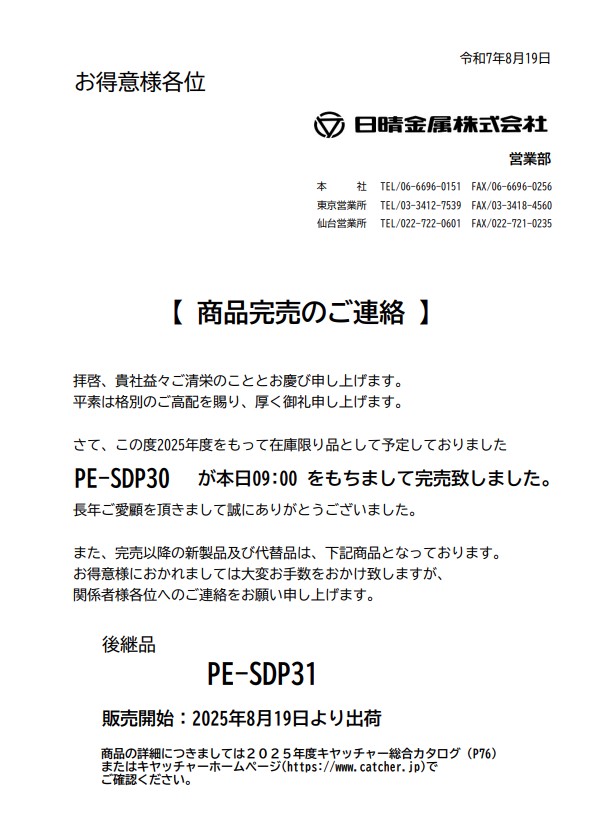 - 2025-11-04【商品完売のご連絡】パラボラキヤッチャー PAX-VFJ