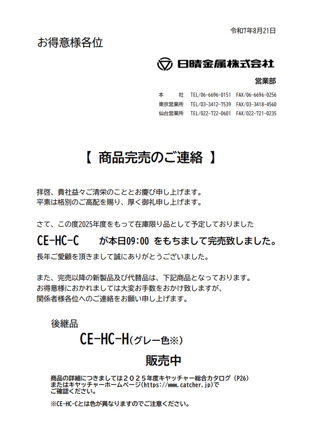 - 2025-08-21【商品完売のご連絡】クーラーキヤッチャー 関連部品 CE-HC-C