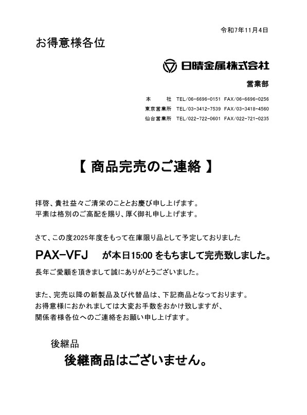 - 2025-11-04【商品完売のご連絡】パラボラキヤッチャー PAX-VFJ