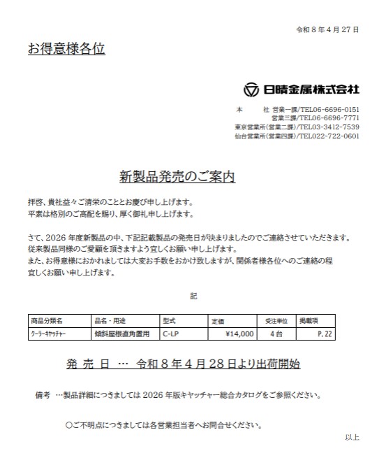 - 新製品販売のご案内作成日: 2026-04-16ID: 528